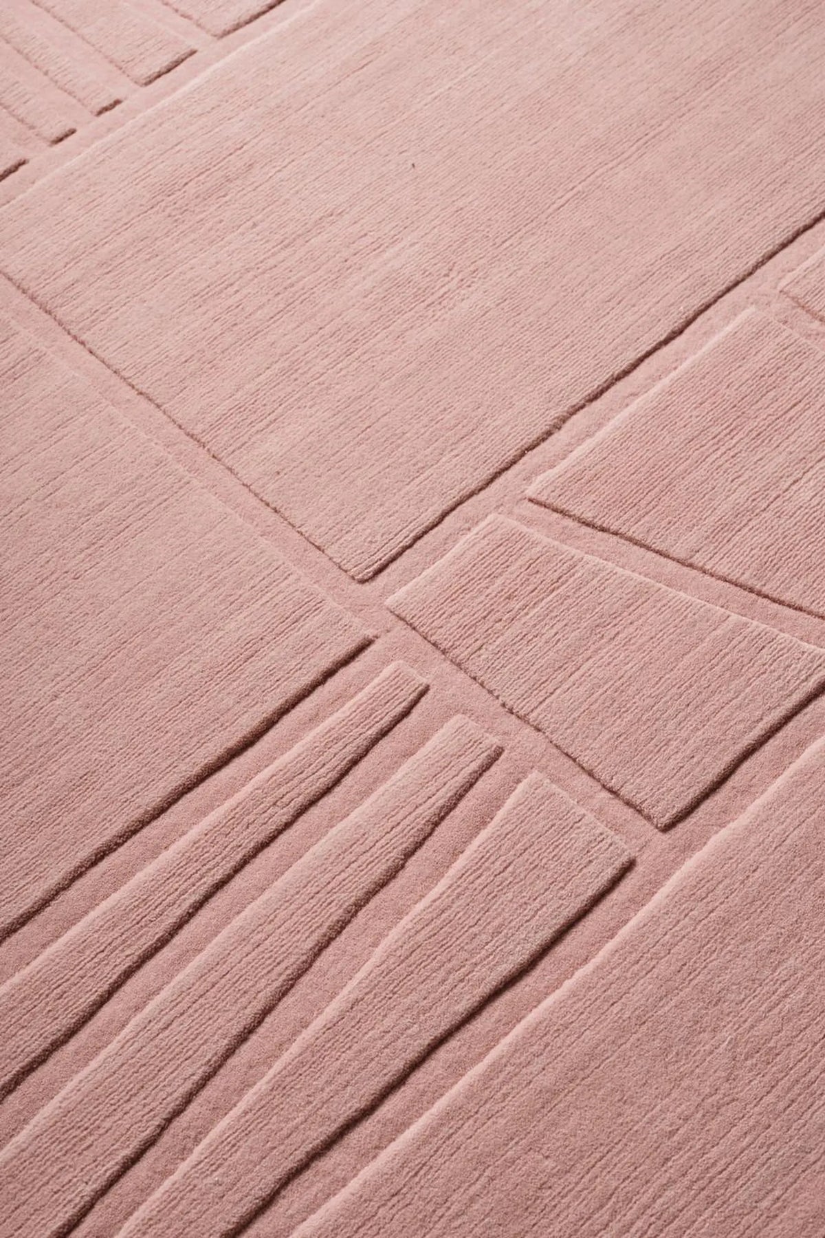 Silent Script hand tufted rug blush variant displayed in soft pink tone with linear hand tufted texture