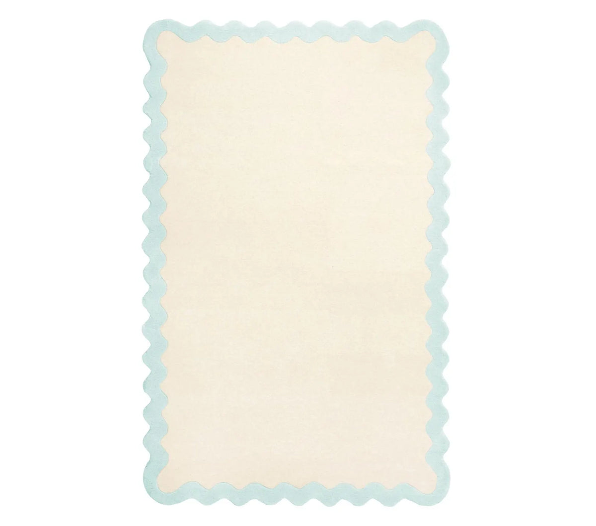 hand tufted Lullaby Rug full view showing soft ivory base with pastel pink scalloped border for a gentle nursery look