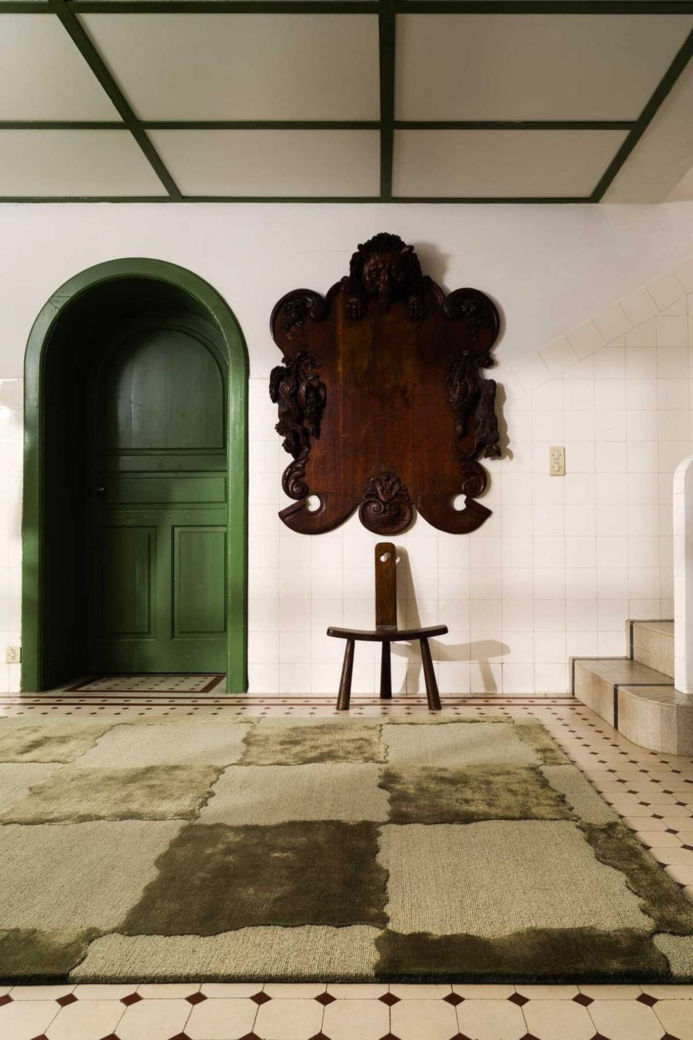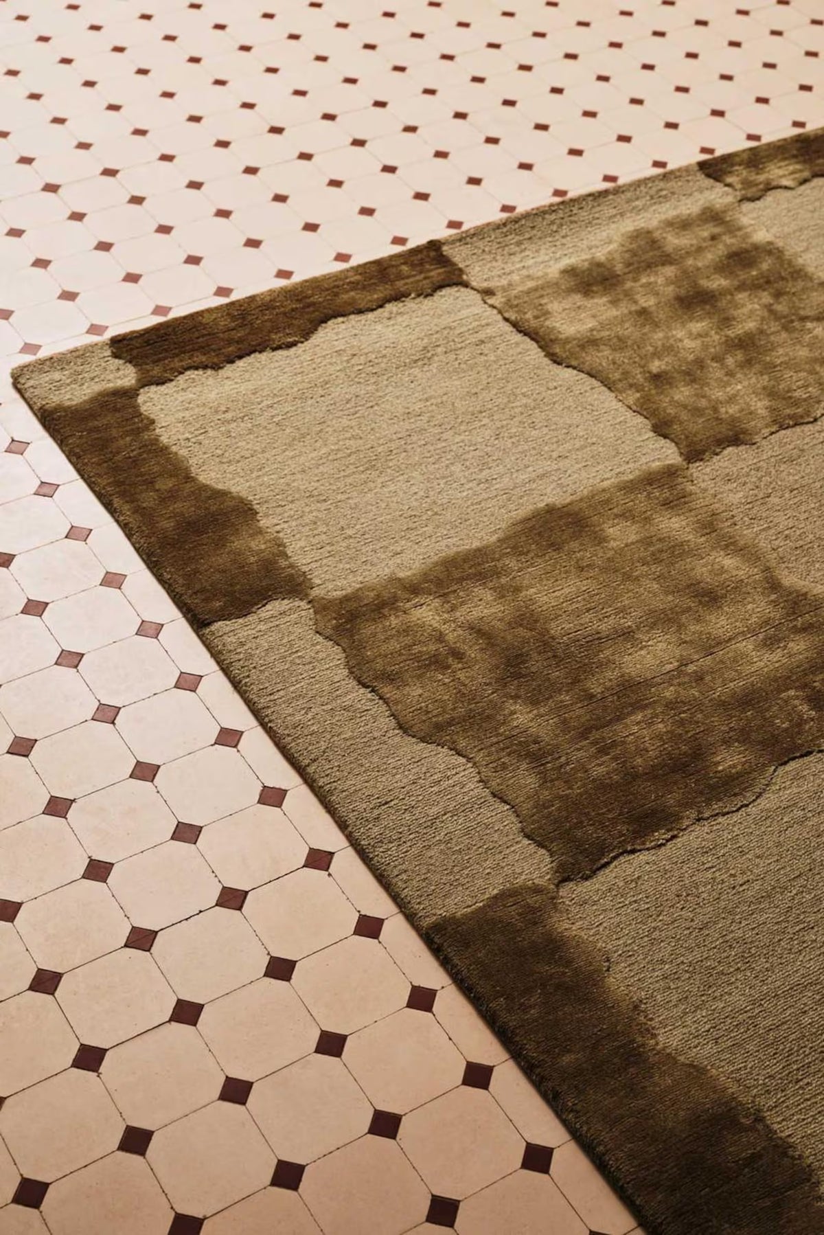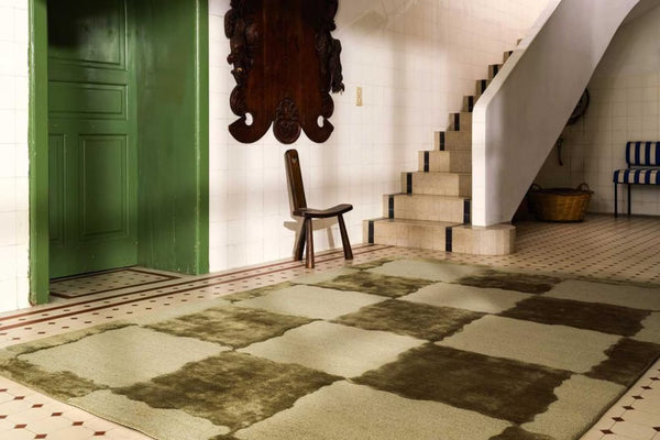 Brique Rug features an olive-toned block layout with subtle tonal depth and structured geometry, adding an architectural edge to modern interiors.
