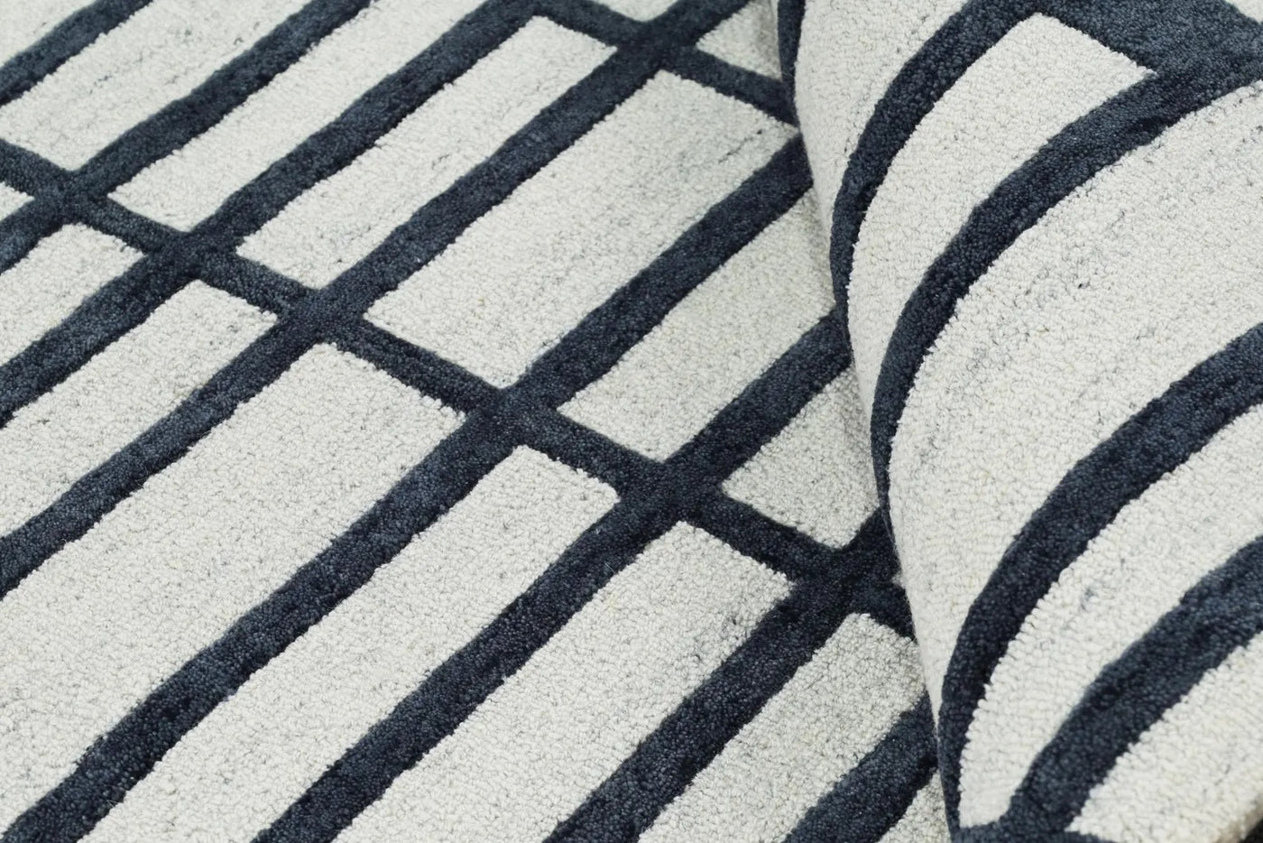 Close-up of Gridlock Rug showing raised black lines and soft wool pile on a white background.