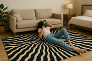 The Zebra Bloom Rug brings wild elegance into your home with its striking zebra-inspired stripes in classic black and cream. Hand tufted with precision, this rug is crafted for both durability and comfort, making it ideal for living rooms, bedrooms, or bold statement interiors. A modern yet timeless piece that transforms your space into a stylish sanctuary.