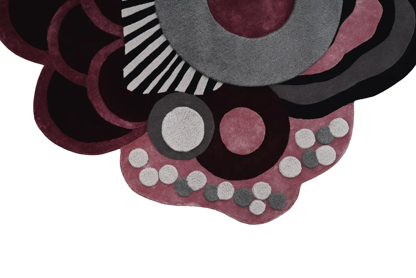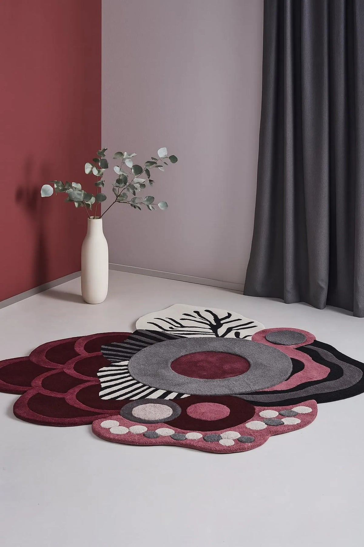 The Chic Abstract Floral Rug is a bold blend of art and comfort. Its hand tufted finish highlights sculptural edges, layered circles, and floral-inspired motifs. Rich shades of burgundy, grey, and black create a striking contrast, making this rug a statement piece for modern interiors. Soft underfoot yet durable, it’s designed to bring texture, character, and elegance into your space.
