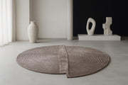 Circular Ribbed Modern Round Rug is a striking centerpiece for any space. Hand tufted with premium craftsmanship, it showcases an overlapping trellis-inspired design in bold, multi-colored tones. Its sculptural curves and soft pile bring both comfort and artistry, making it perfect for modern living rooms, creative interiors, or statement decor.